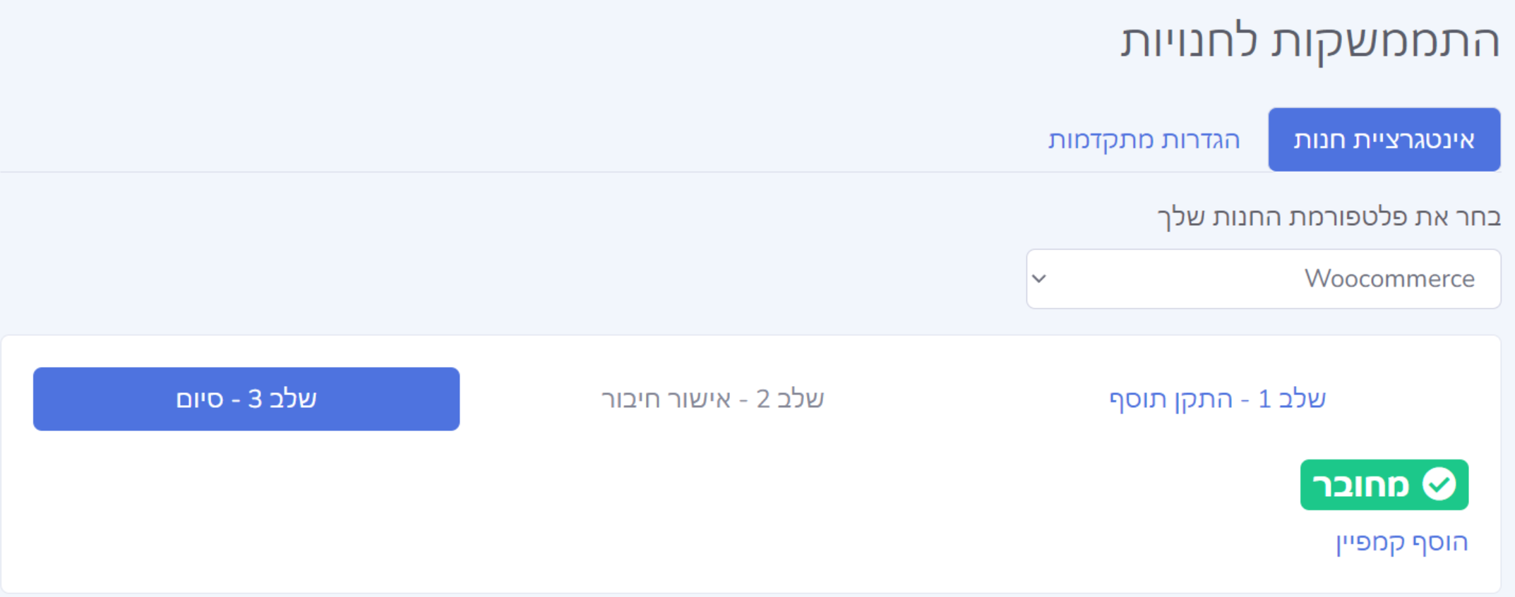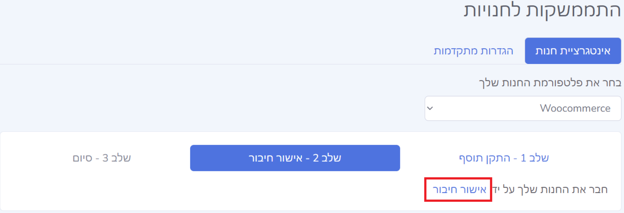 במידה והתוסף הותקן בהצלחה החיבור יתבצע ותעבור לשלב הבא שם יש ללחוץ על הקישור “אישור החיבור”