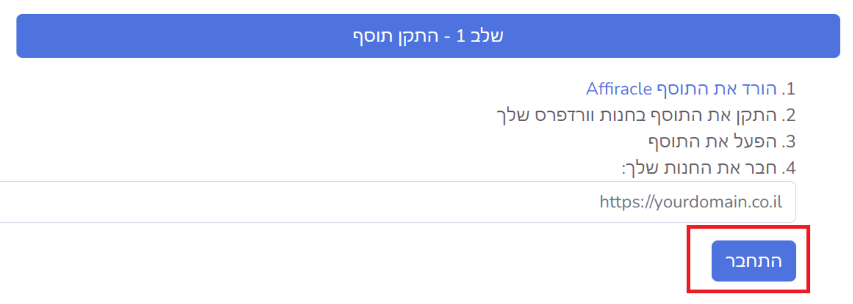 לאחר סיום התקנת התוסף ניתן לחזור ל-Affiracle וללחוץ על “התחבר”