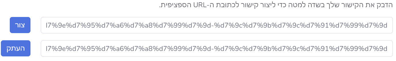 על מנת ליצור קישור אשר יכווין את הגולשים ישירות על עמוד מסויים, יש להדביק את הקישור בשדה הקישור וללחוץ על כפתור צור.